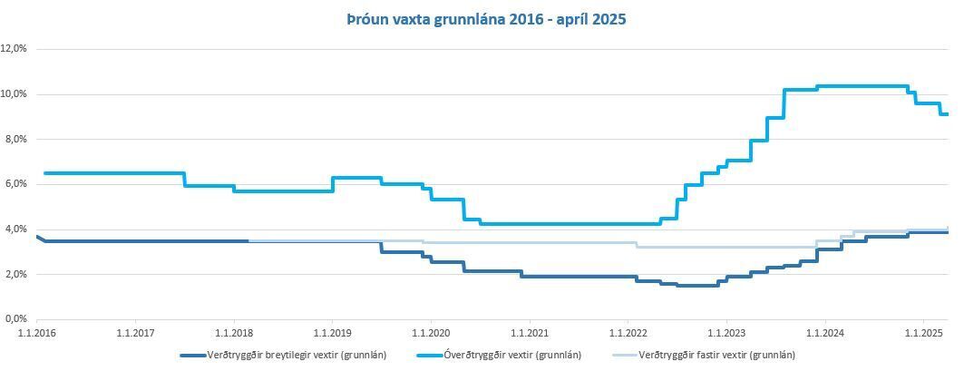 Þróun vaxta grunnlána 2016 - apríl 2025