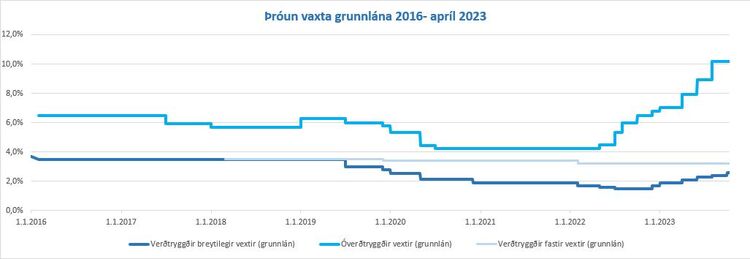 | Fastir vextir verðtryggðra lána út lánstímann (grunnlán) | 4,10% |