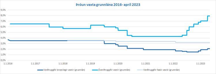 | Breytilegir vextir verðtryggðra lána (eldri grunnlán) | 4,0% |
