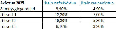 Samanlögð iðgjöld ársins 2024 námu 9.010 m.kr. og samanlagðar lífeyrisgreiðslur 3.547 m. kr. Hlutfall lífeyris af samanlögðum