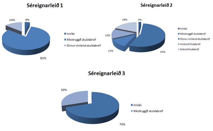 Séreignarleið 3 skilaði 5,1% nafnávöxtun. Leiðin fjárfestir eingöngu í innlánum og stuttum ríkistryggðum bréfum. Eignasamsetning leiðarinnar um áramótin var eftirfarandi; Innlán 70% og ríkistryggð skuldabréf 30%.